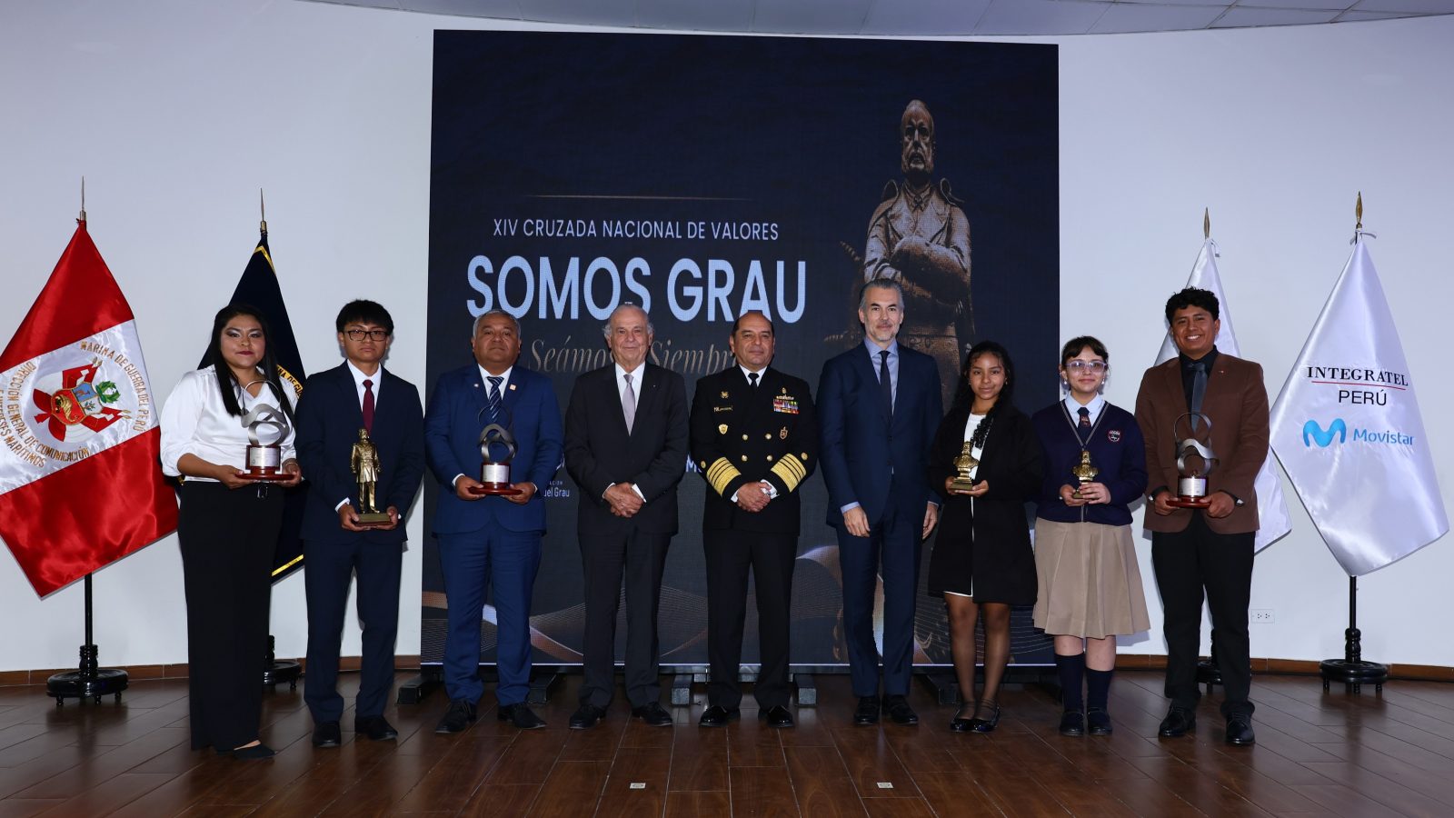 La Marina de Guerra del Perú, la Fundación Miguel Grau e Integratel Perú (Movistar) realizaron la ceremonia de premiación de la decimocuarta edición del Premio Nacional Almirante Miguel Grau. Estos reconocimientos forman parte de la Cruzada Nacional de Valores “Somos Grau, Seámoslo Siempre” que promueve entre la ciudadanía los principios de dignidad, lealtad y honestidad que guiaron la vida del héroe nacional.
